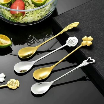 Cuchara de acero inoxidable de oro plateado para juego de café cucharadita lindo helado postre pastel cuchara accesorios de cocina vajilla